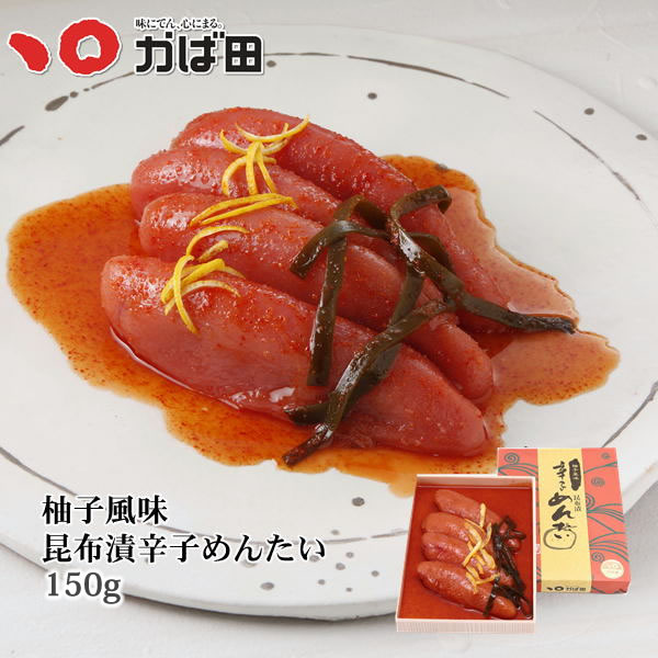 | 原材料 | すけとうだらの卵巣(米国産)、昆布、柚子、発酵調味料、かつお節エキス、清酒、還元水飴、食塩、唐辛子、たん白加水分解物/調味料(アミノ酸等)、酒精、ソルビット、トレハロース、酸化防止剤(V.C)、増粘剤(キサンタン)、着色料(黄5、赤102、赤3)、pH調整剤、発色剤(亜硝酸Na)、酵素、(一部に大豆・ゼラチンを含む) |