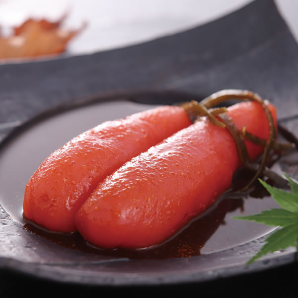| 原材料 | すけとうだらの卵巣(米国産)、昆布、発酵調味料、かつお節エキス、清酒、還元水飴、食塩、唐辛子、たん白加水分解物/調味料(アミノ酸等)、酒精、ソルビット、トレハロース、酸化防止剤(V.C)、増粘剤(キサンタン)、着色料(黄5、赤102、赤3)、pH調整剤、発色剤(亜硝酸Na)、酵素、(一部に大豆・ゼラチンを含む) |