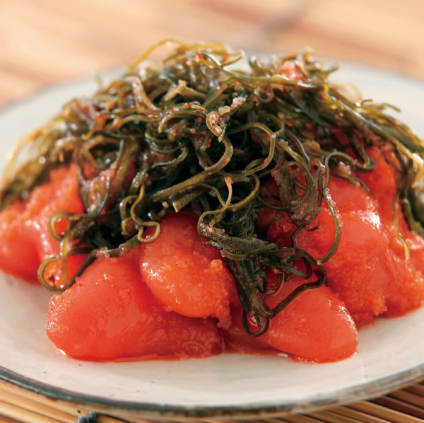 | 原材料 | すけとうだらの卵巣(米国産)、昆布、発酵調味料、かつお節エキス、清酒、還元水飴、食塩、唐辛子、たん白加水分解物/調味料(アミノ酸等)、酒精、ソルビット、トレハロース、酸化防止剤(V.C)、増粘剤(キサンタン)、着色料(黄5、赤102、赤3)、pH調整剤、発色剤(亜硝酸Na)、酵素、(一部に大豆・ゼラチンを含む) |