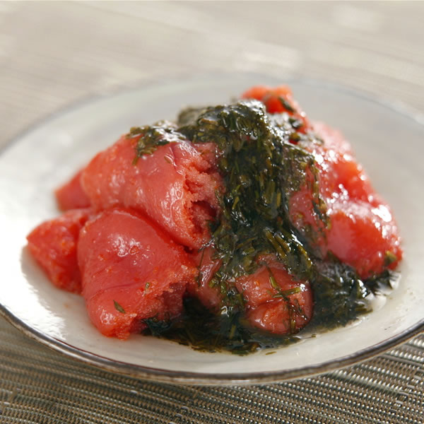 とろ〜り、シャキッとした歯ざわりと磯の風味がめんたいに合います。