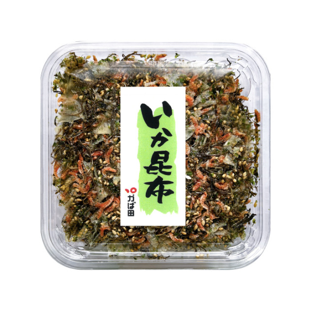| 原材料 | 調味昆布(昆布(北海道産)、醸造酢、還元水飴)、調味いか(いか、砂糖、食塩)、ごま、ツノナシオキアミ、砂糖、食塩、アオサ/調味料(アミノ酸等)、ソルビット(一部にいか・ごまを含む) |