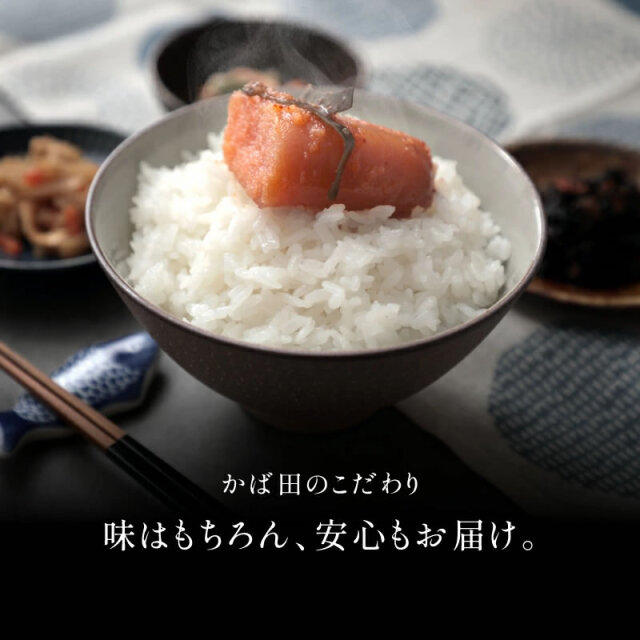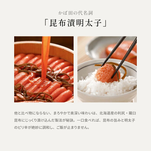 かば田自慢の昆布漬辛子めんたいに、いか墨の芳醇な風味を加えました。