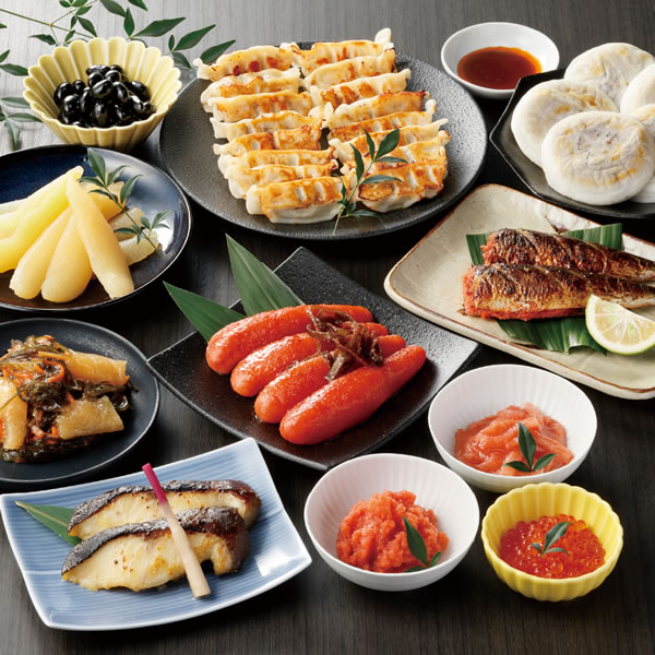 昆布漬辛子めんたい『雷』 200g いかめんたい 70g 数の子めんたい 70g いくらの醤油漬 40g 松前数の子 150g いわしの明太子漬 2尾 銀だらの西京漬 2切 味付数の子 140g 丹波篠山産黒豆 120g 梅ヶ枝餅 5個入 めんたいぎょうざ 16個・タレ×1ケ |